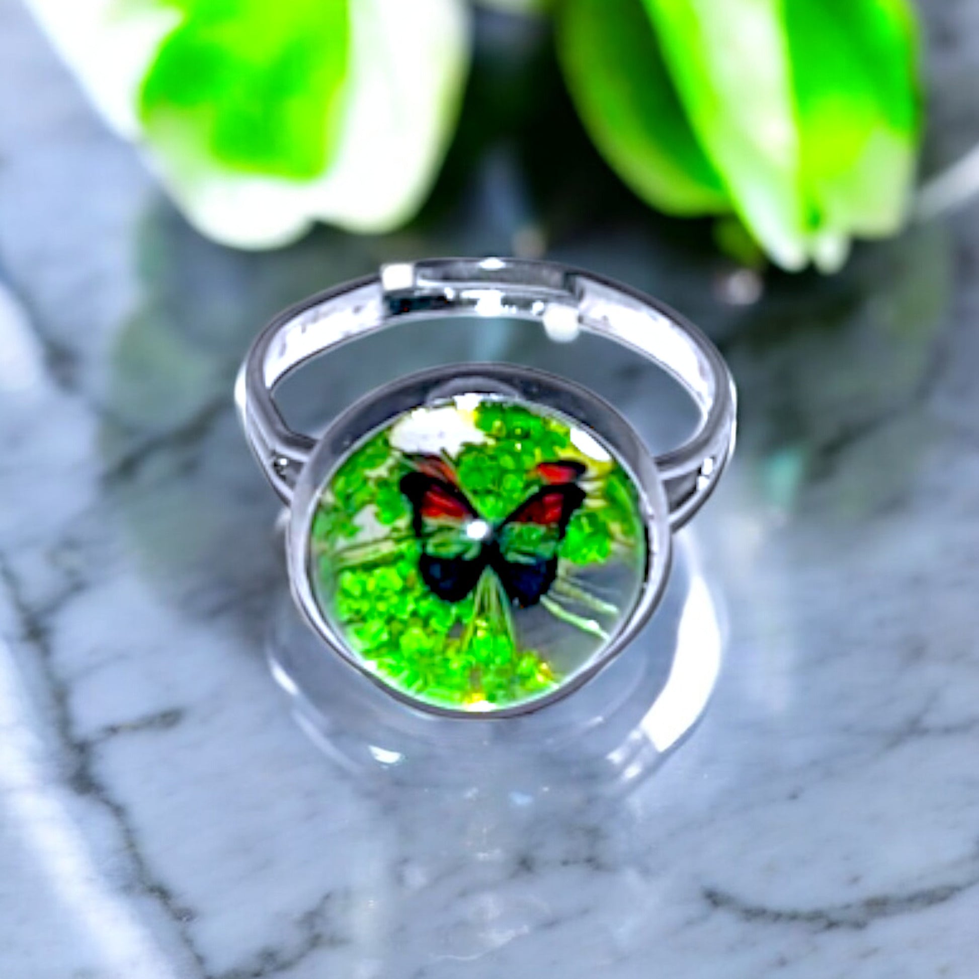Butterfly Resin Rings – Vibrant Nature-Inspired Jewelry, Colorful Garden-Inspired Accessories, Handmade Gift for Nature Lovers