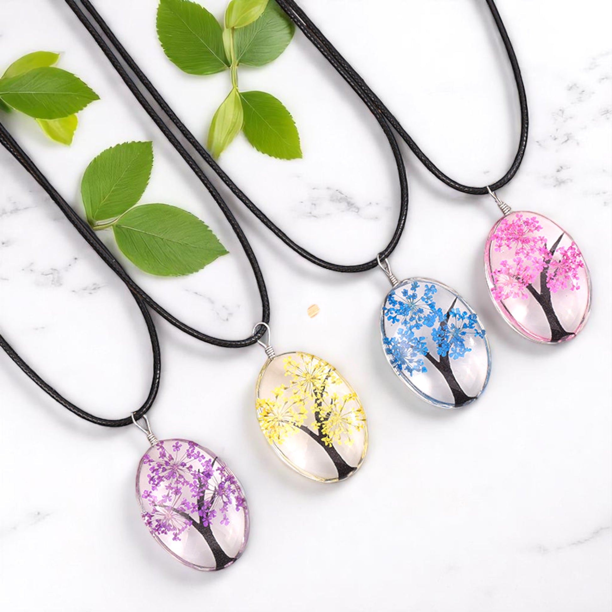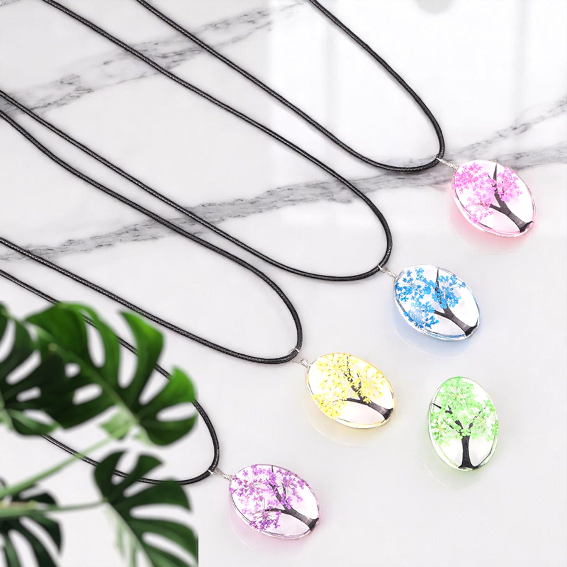 Embrace the beauty of nature with this stunning Tree of Life resin pendant necklace. Each pendant features a unique, vibrant tree design encased in high-quality, transparent resin. The oval-shaped pendants are available in different captivating colors, including pink, blue, yellow, purple, and green, making them perfect for any style or occasion.