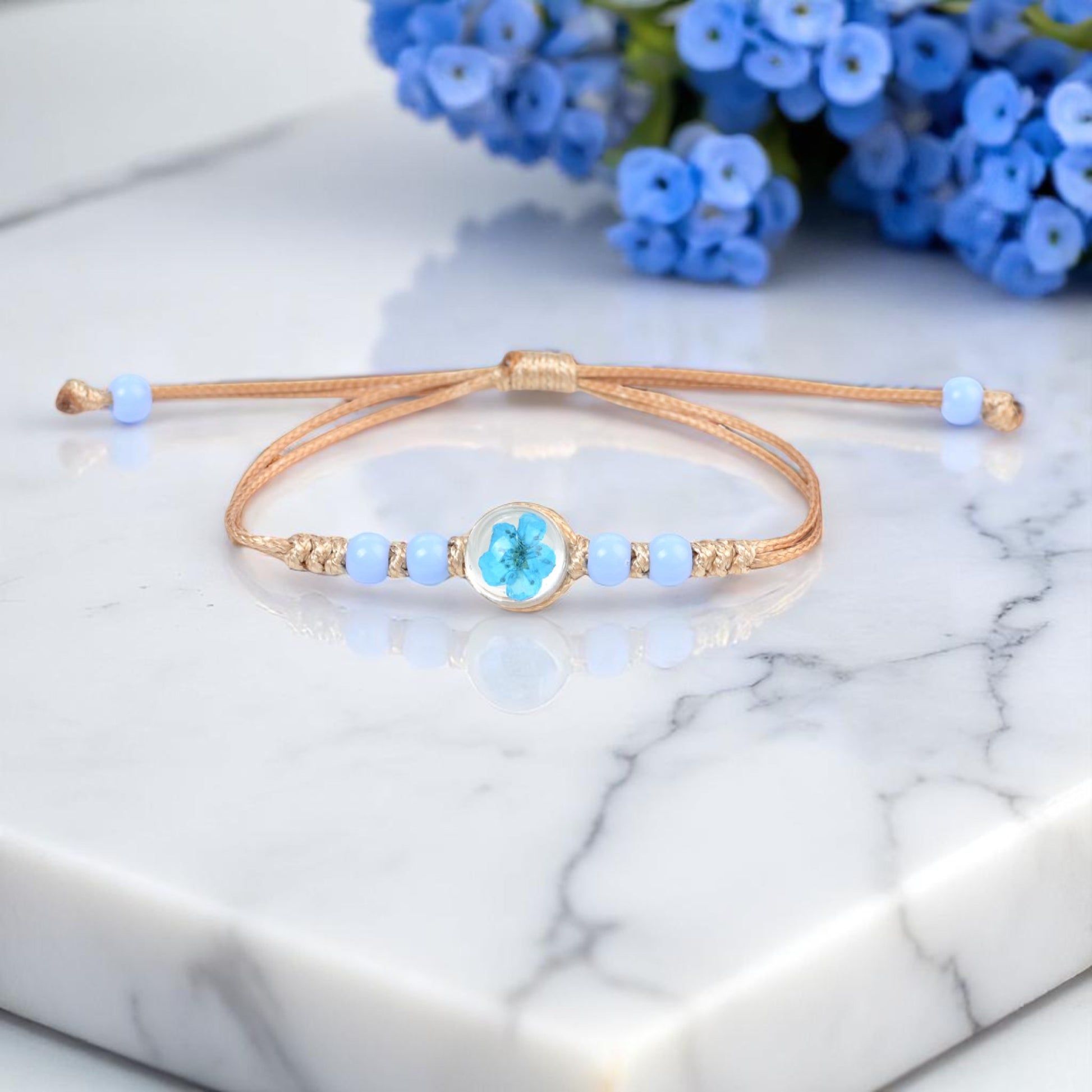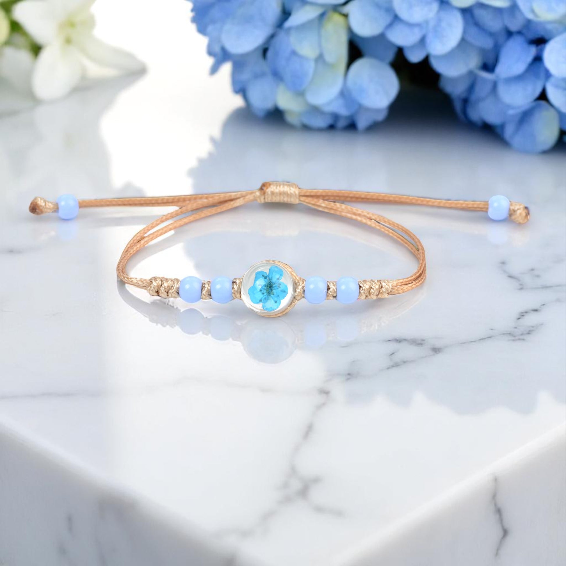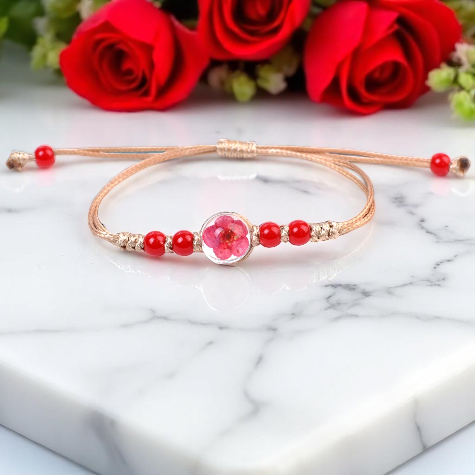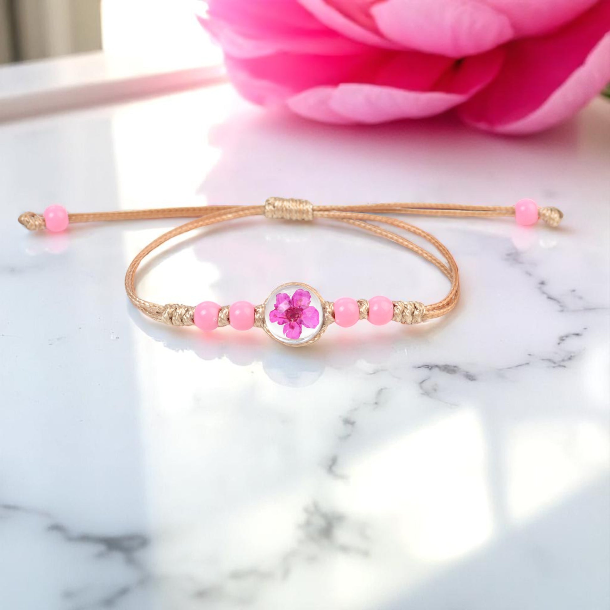 Handcrafted Floral Charm Beaded Bracelets – Adjustable and Vibrant, Handmade Floral Bracelets, Adjustable Beaded Bracelets, Boho Style Jewelry for Women, Dried Flower Charm Bracelets, Resin Flower Jewelry, Unique Handmade Jewelry