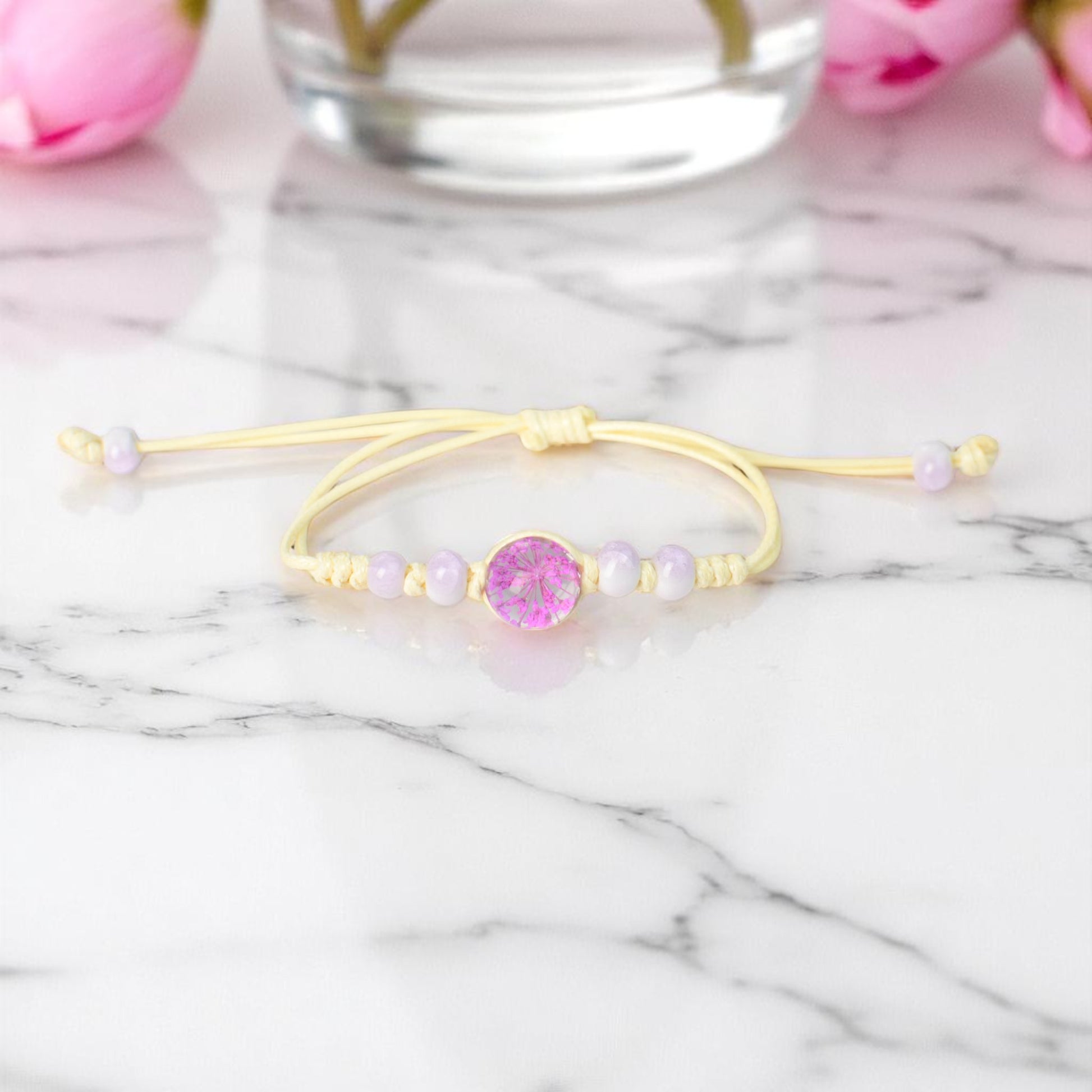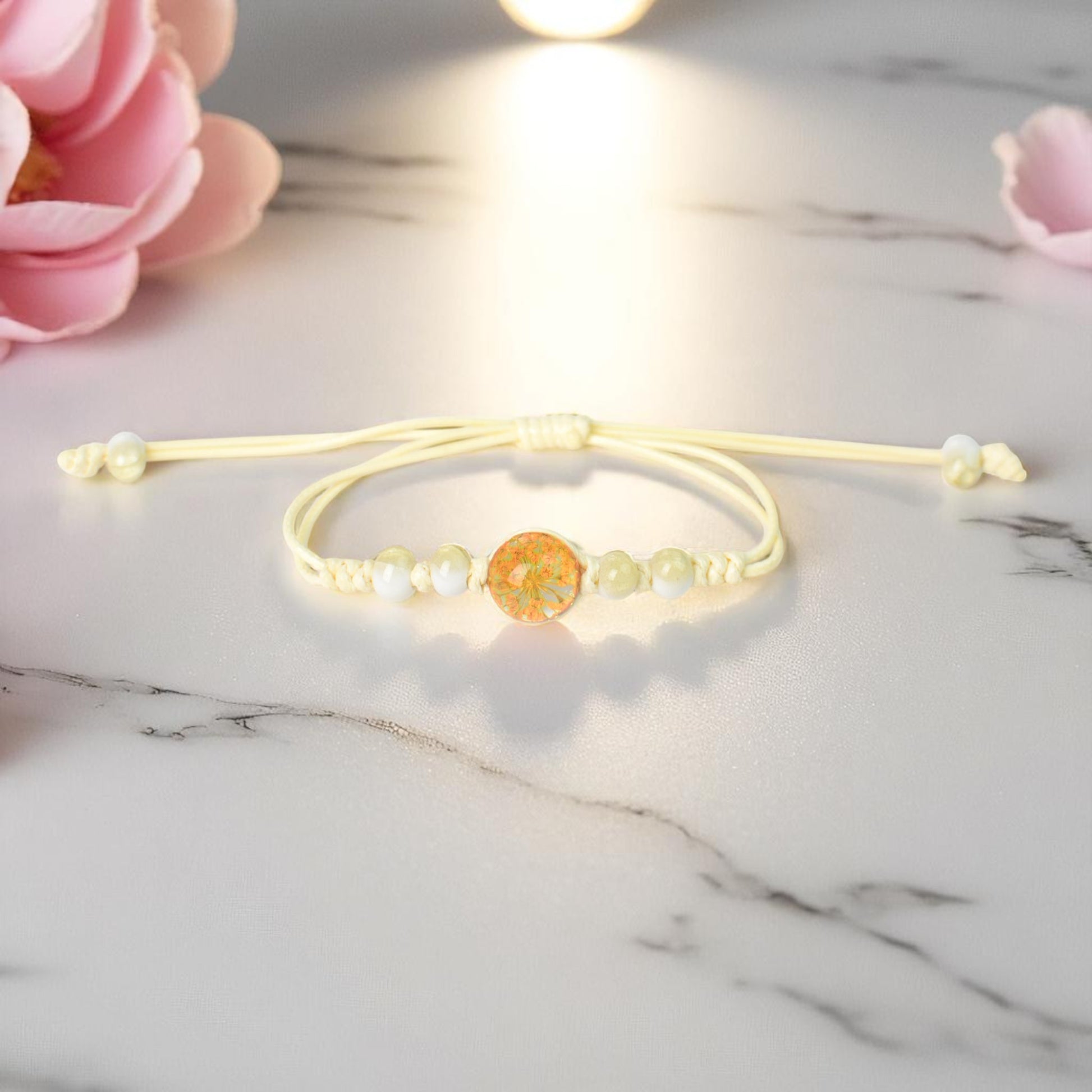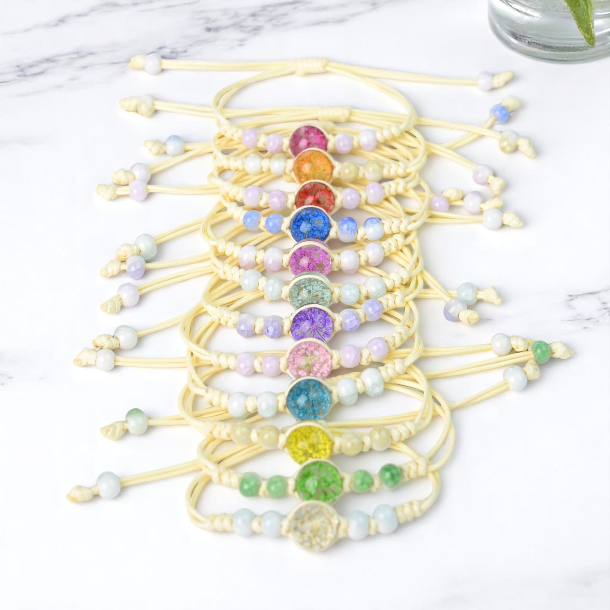 Add a pop of color and elegance to your accessory collection with these handcrafted resin charm bracelets. Featuring vibrant resin charms in a variety of hues, each bracelet is accented with delicate beads and durable macramé-style adjustable knots, ensuring a comfortable and secure fit for all wrist sizes. Perfect for casual wear, gifting, or layering with other jewelry, these bracelets embody a minimalist boho-chic style.