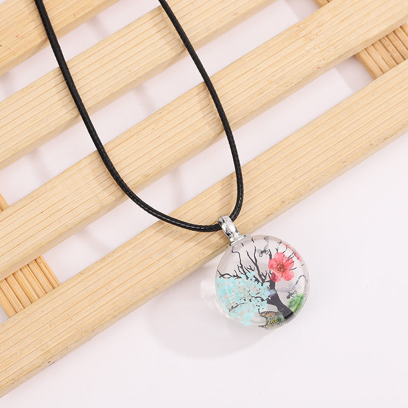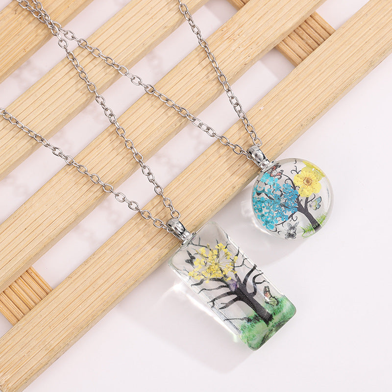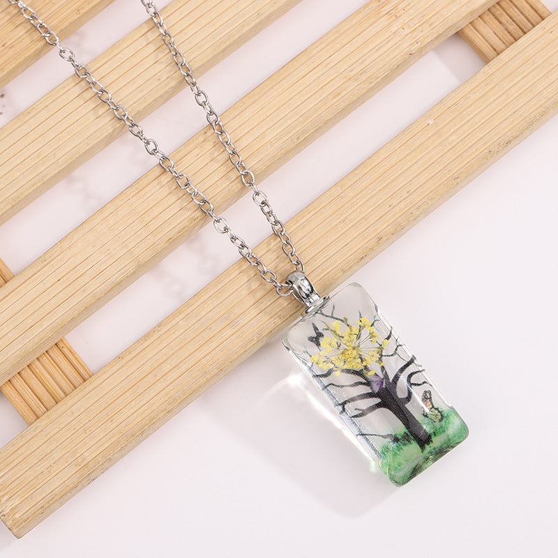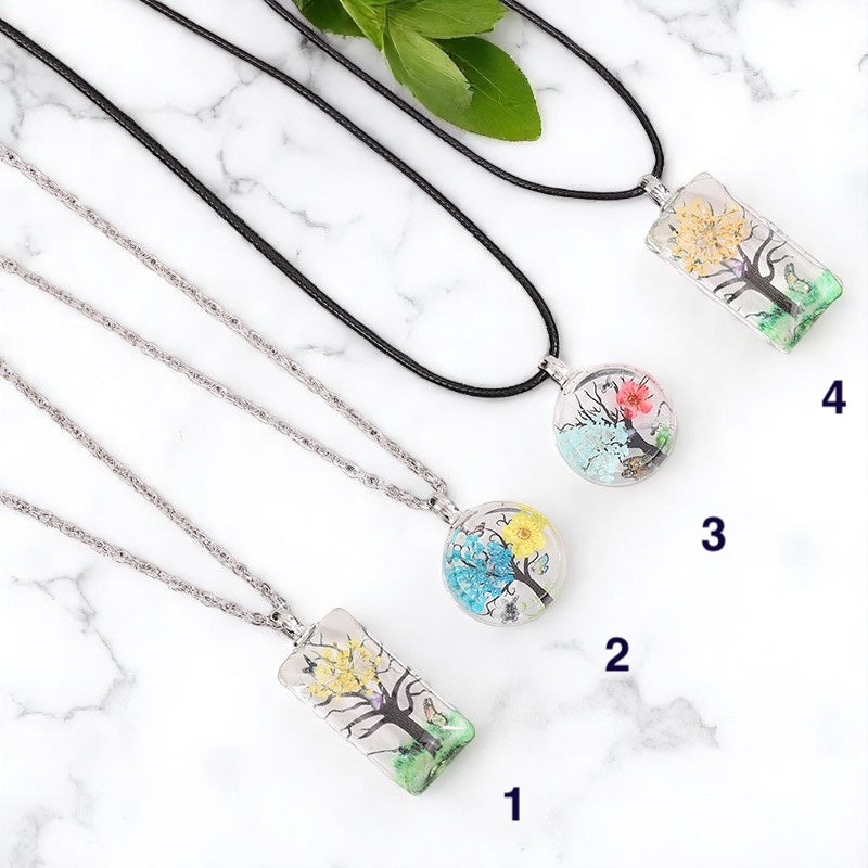 Handcrafted Four Seasons Tree Pendant Necklace – Resin Art Jewelry with Adjustable Chain, Nature-Inspired Pendant, Handmade Tree Necklaces, Round and Rectangle Tree Necklaces, Seasonal Jewelry Gift