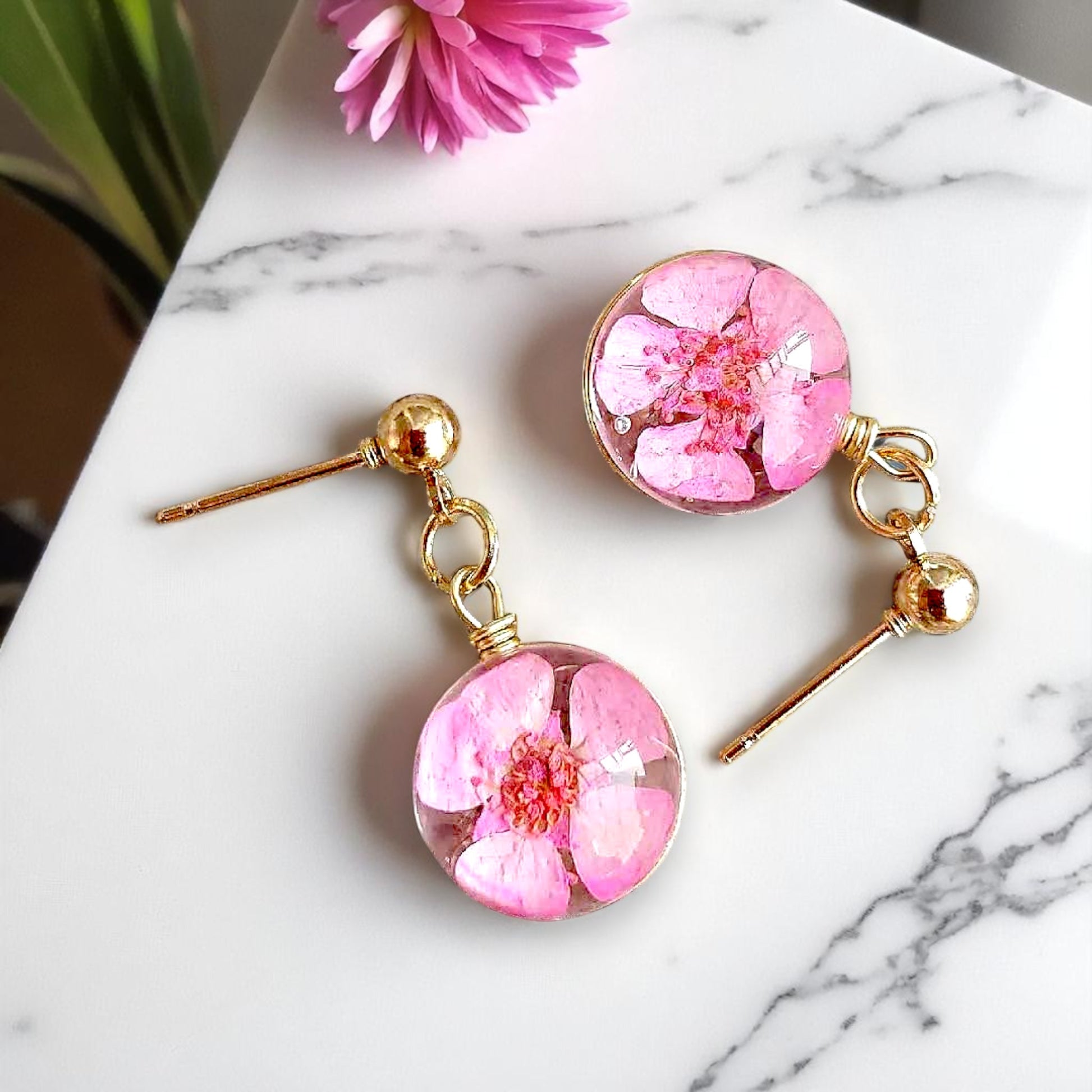 Handcrafted Pressed Flower Resin Earrings - Vibrant Floral Dangle Design, Unique gift, Spring and summer jewelry, Artisan floral earrings, Nature lover gifts, Eco-friendly earrings