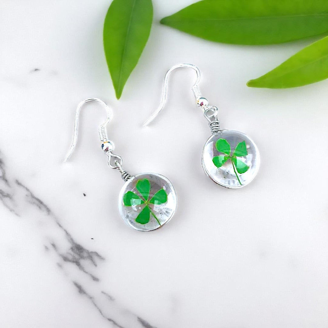 Handmade Four-Leaf Clover Resin Earrings - Lucky Charm Dangle Jewelry, Unique gift , Lucky charm earrings, Nature-inspired jewelry,