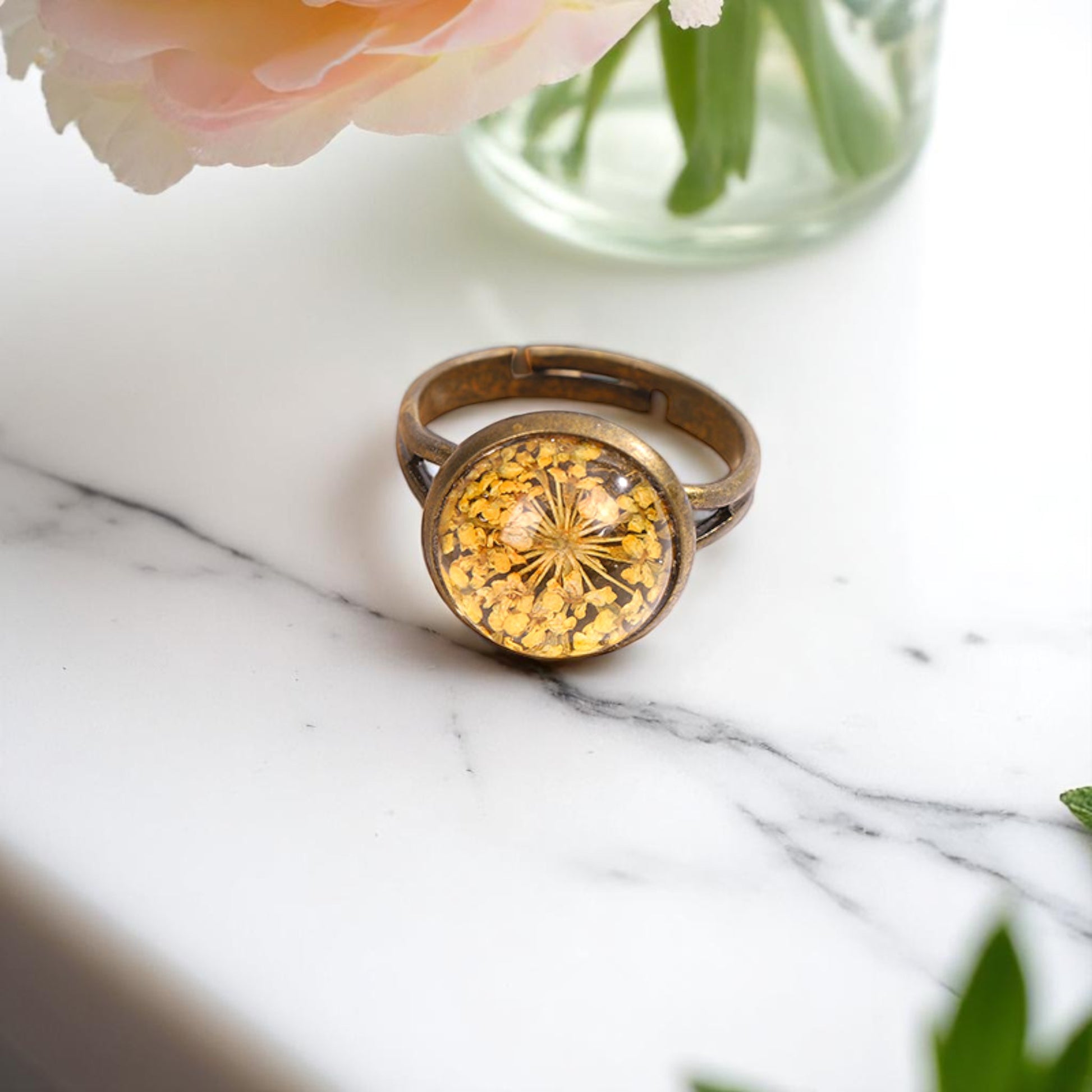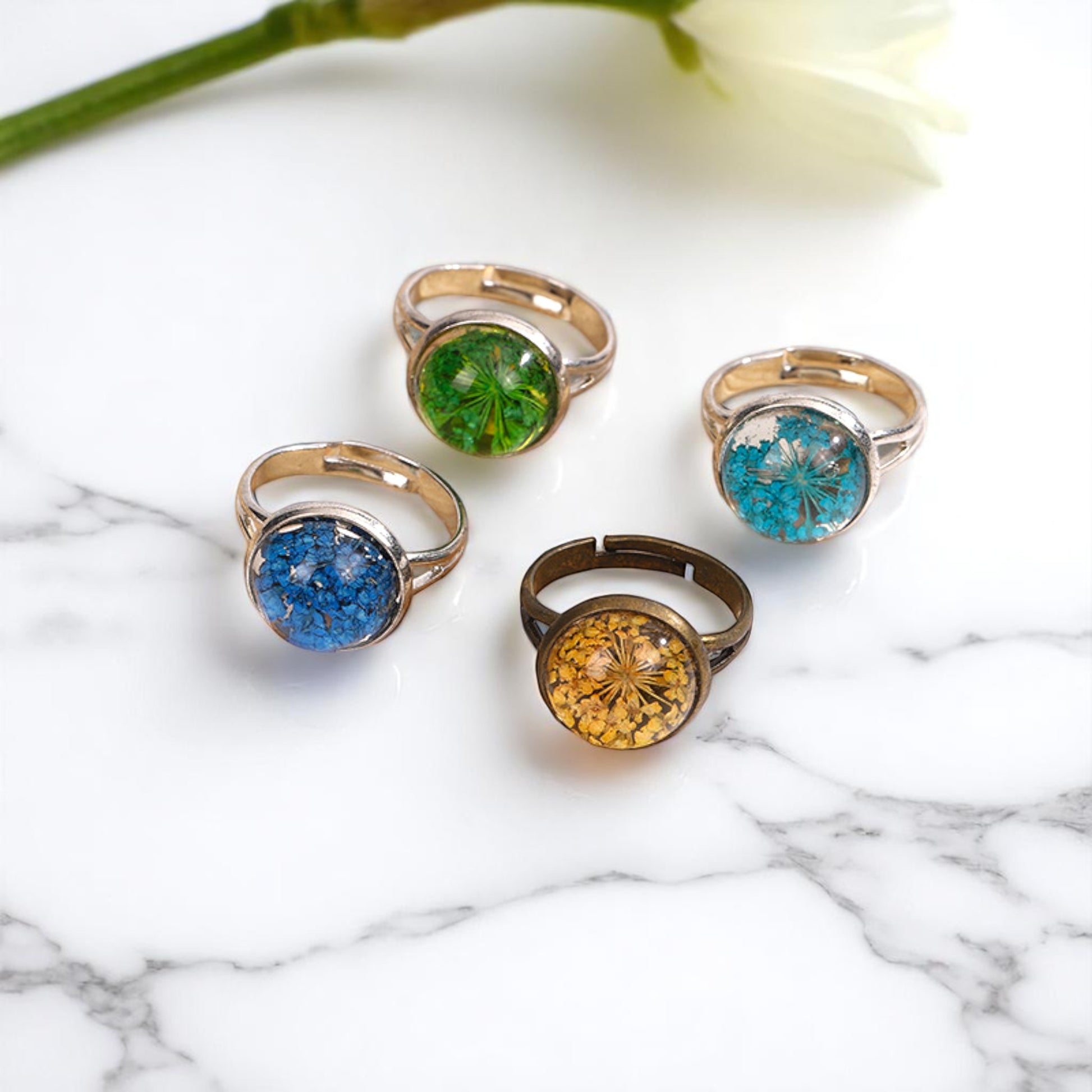 Handmade Resin Flower Adjustable Rings – Dried Floral Jewelry, Nature-Inspired Jewelry, Romantic Gift Ideas, Spring Jewelry Collection, Eco-Friendly Jewelry, Unique Gift,