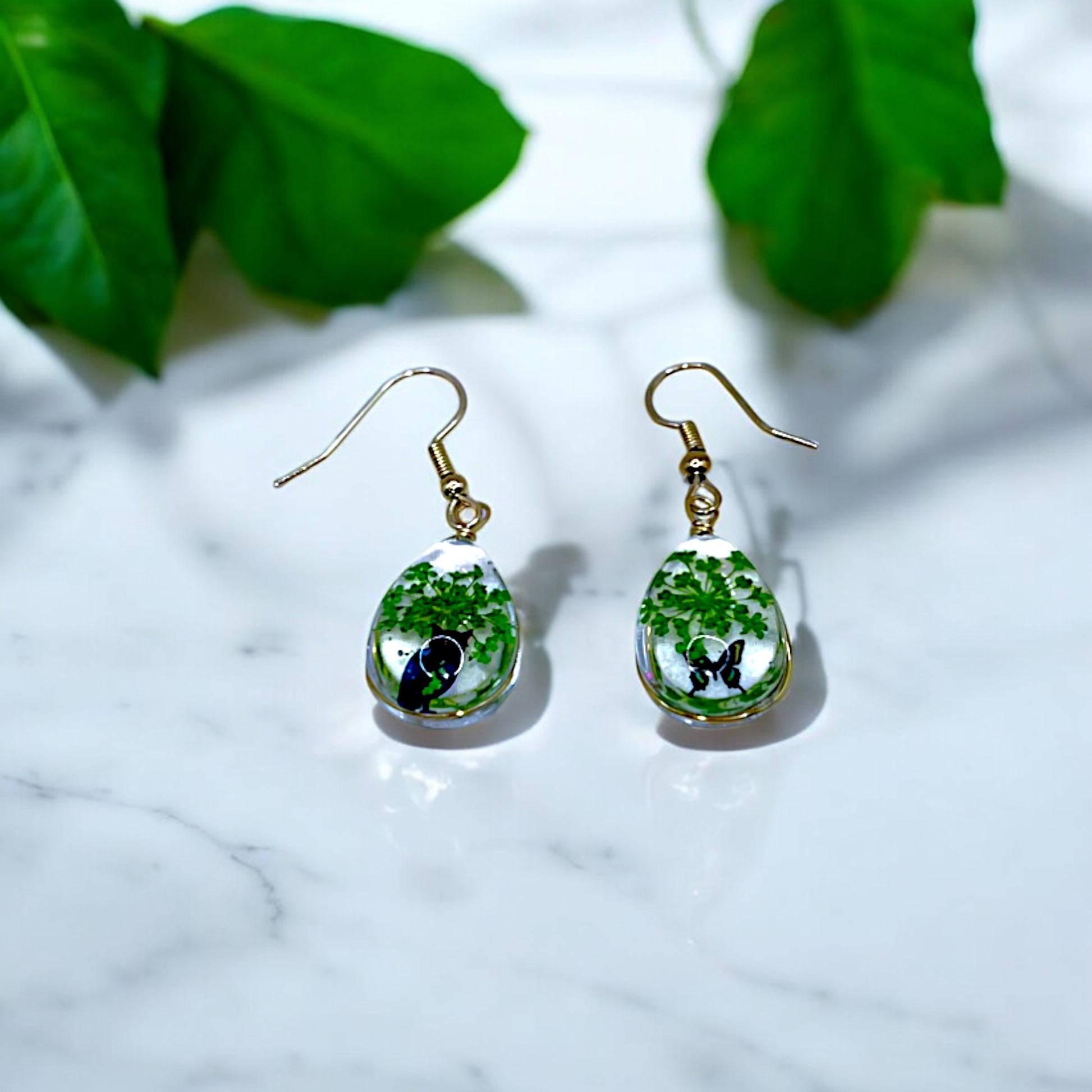 Add a whimsical touch of nature to your look with these beautifully handcrafted butterfly and floral dangle earrings. Each teardrop-shaped pendant (approx. 1.2 cm x 1.5 cm) is made from clear, durable resin and encapsulates a vibrant mix of pressed flowers and a delicate butterfly motif, creating a miniature garden scene that celebrates the joy of spring and the freedom of nature. Lightweight and comfortable for all-day wear, these earrings are perfect for adding a splash of color to your everyday outfit or as a charming accent for special occasions. Their vivid colors and intricate details make them a standout piece in any jewelry collection.